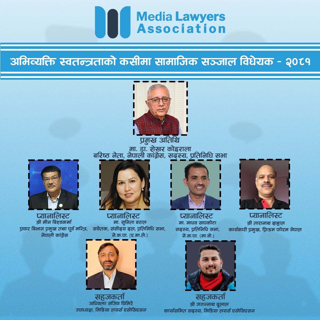 We invite you to join us for a thought-provoking and interactive event at Indreni Foodland, New Baneshwor, on 27th Kartik, 2081, starting at 11:00 AM. This gathering will bring together a diverse group of professionals, legal experts, journalists, and advocates focused on shaping the future of media law and policy. Through a series of engaging presentations, panel discussions, and networking sessions, attendees will explore pressing issues in digital rights, media ethics, freedom of expression, and regulatory challenges. This event offers a unique platform for knowledge-sharing, collaboration, and community-building, empowering participants to take an active role in advocating for transparency, ethical standards, and sustainable practices in the media landscape. Whether you are a media professional, policy maker, or simply passionate about supporting a resilient media ecosystem, this event promises insights and connections that will inspire action and innovation.